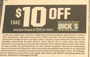 Dicks $10 off coupon
