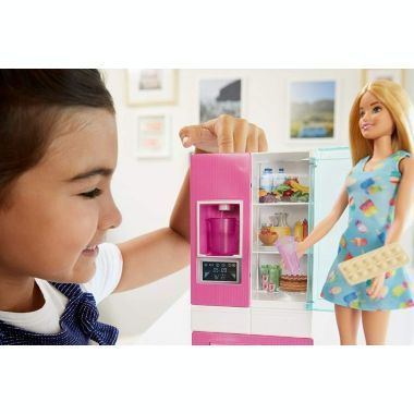 Barbie Doll, 11.5-in Blonde, and Furniture Set, Refrigerator with Working Water Dispenser and Three Kitchen Accessories